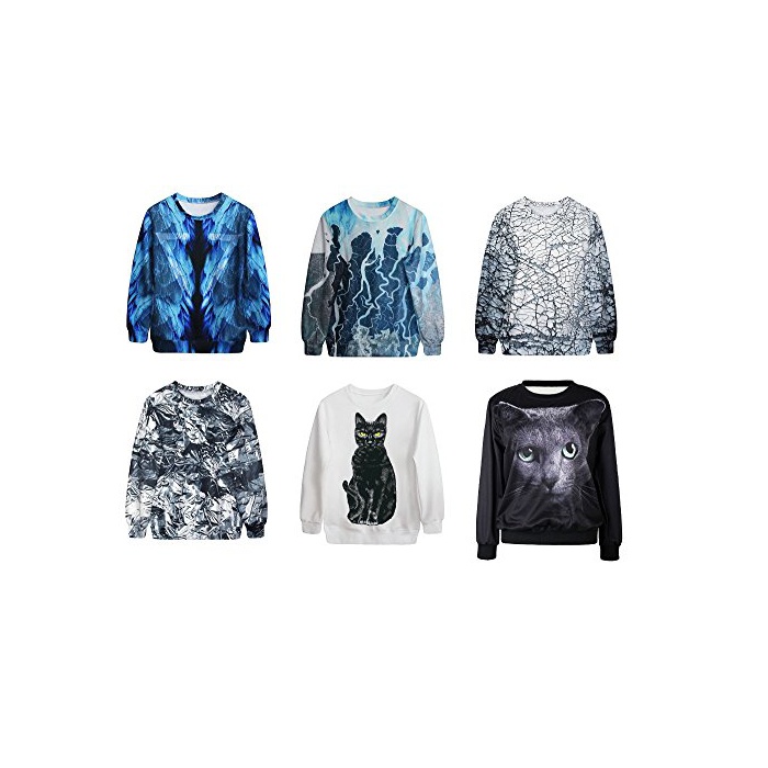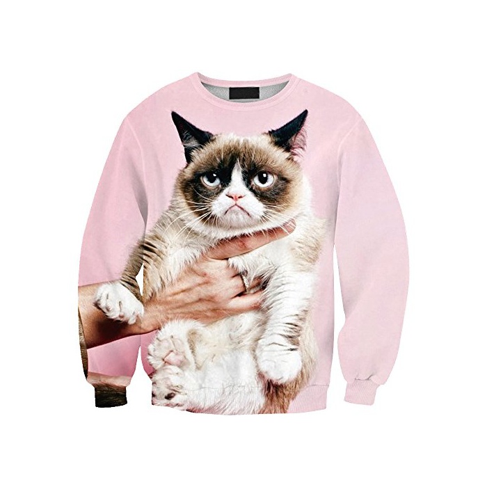 (코스믹 트리) COSMIC TREE 레이디스 고양이 고양이 기하학 엣지 디지탈 프린트 트레이너 맨즈 유니섹스 긴 소매 (T580)