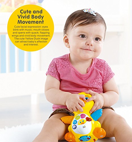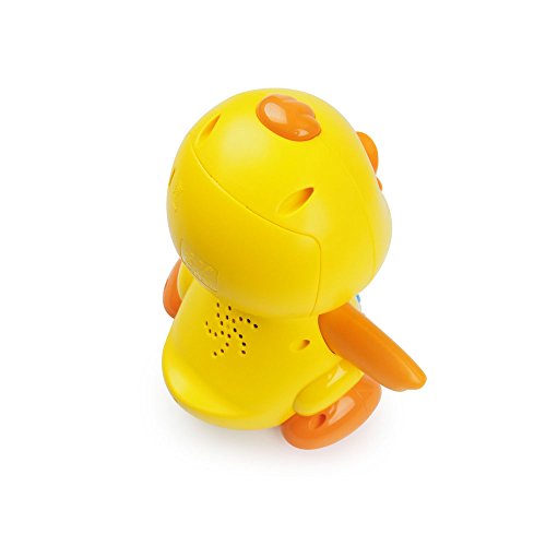 Express your love with this musical yellow flapping duck. Make play time a fun time! Stimulate your child's motor skills development and large muscle group as your child uses his/her arms, legs and whole body to crawl and chase this musical duck toy with lights music action and adjustable sounds.