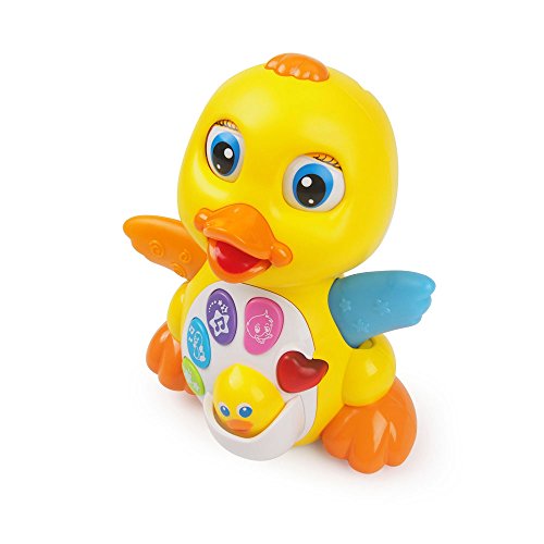 This dancing duck toy will keep you and your child entertained with fun sing-along tunes, wings flapping, eyes blinking, and mouth opening and closing. All of the sounds it makes are adjustable to mute, low and regular. The bright colors are fun and appealing. Make play time a fun time.