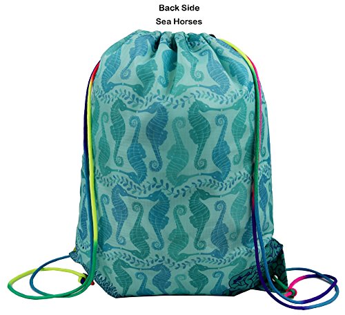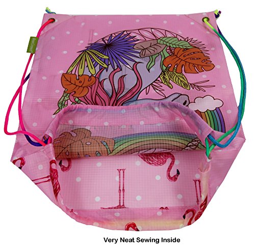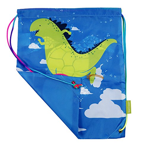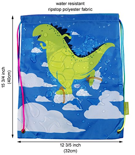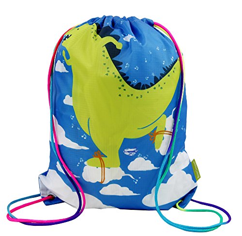 Kids Drawstring Backpack Gym Bag, Cute Dinosaur Design, Unique Rainbow Cinch Ropes, Ripstop Polyester