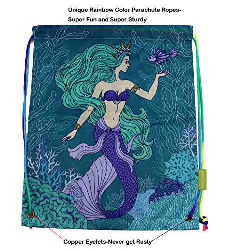 Mermaid Drawstring Gym Bag for Teens Kids Girls, Cinch Backpack for School Gifts