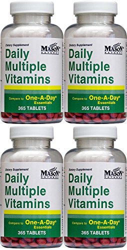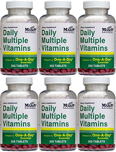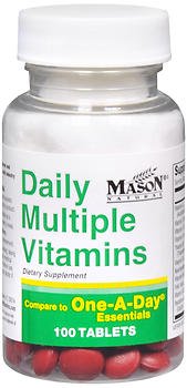 Count 365 Tablets per Bottle. Mason Vitamins Daily Multiple Vitamin Supports physical and mental energy. For a healthy heart and immune system. Contains key nutrients to support health. *Legal Disclaimer: These statements have not been evaluated by the Food and Drug Administration. This product is not intended to diagnose,treat,cure or prevent ant disease. This product has been manufactured and packaged in strict conformance with industry & government standards. Mason Natural½is a registered trademark and does not refer to any product claim.Feature
