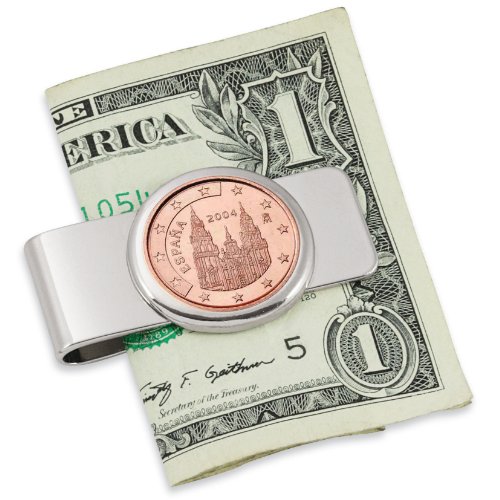 -. Title : Spain Obradoiro 5 Cent Euro Coin Silvertone Money Clip