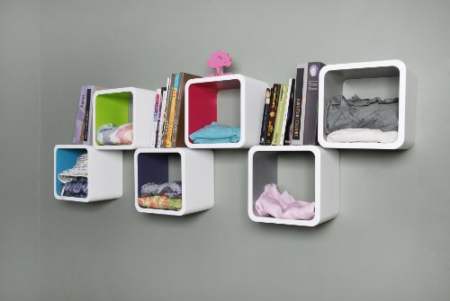 - Feature : Stackable rounded corner shelf / Red Color Shelf / Size: 12inch H by 8inch D by 12inch L / Space-saving, creative, beautiful; Goes with most all decor / Hidden bracket design, Comes with hardware (screws, etc.), installs easily