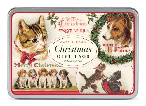 -. Title : Cavallini Papers Glitter Gift Tags Christmas Cats and Dogs Assorted Gift Tags Packaged in a Tin, Set of 36