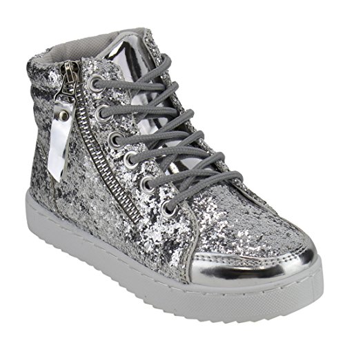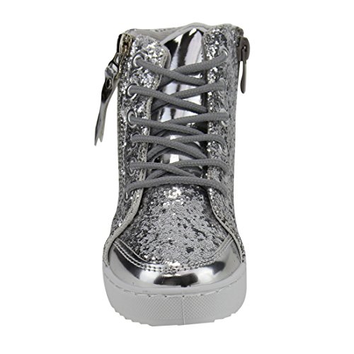 -. Title : Link FP55 Girl's Glitter Lace Up White Sole Ankle High Top Street Sneakers