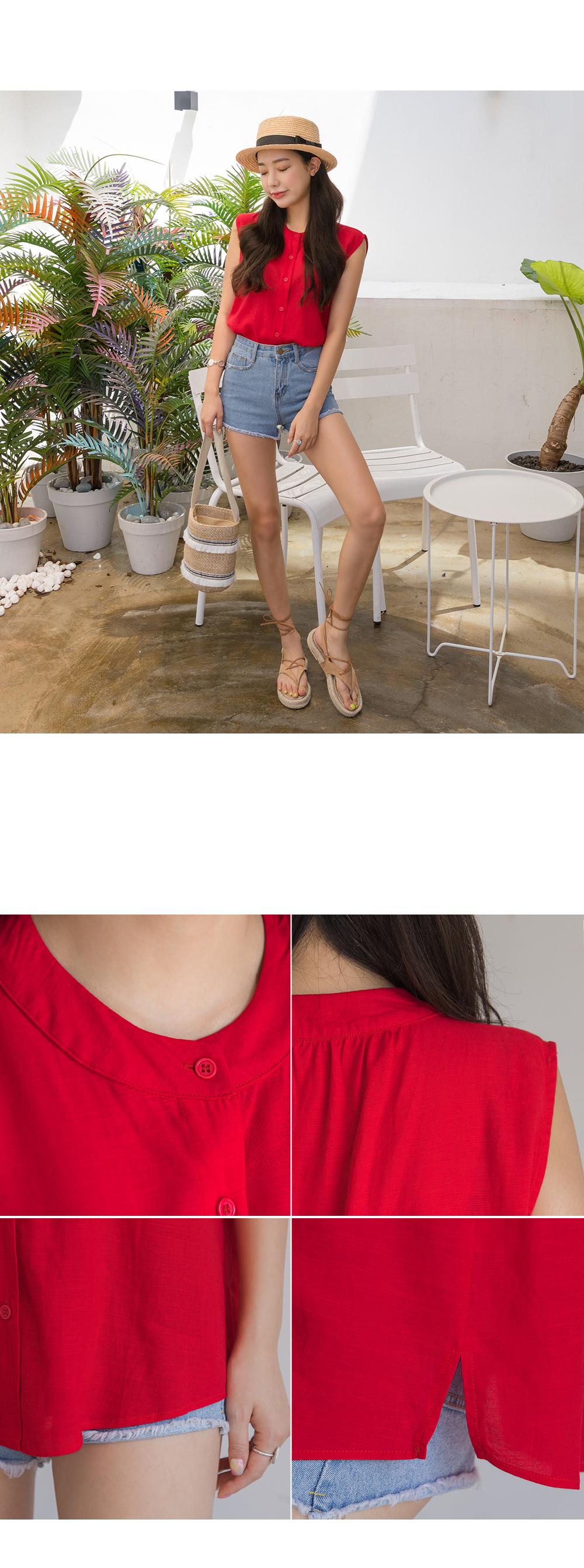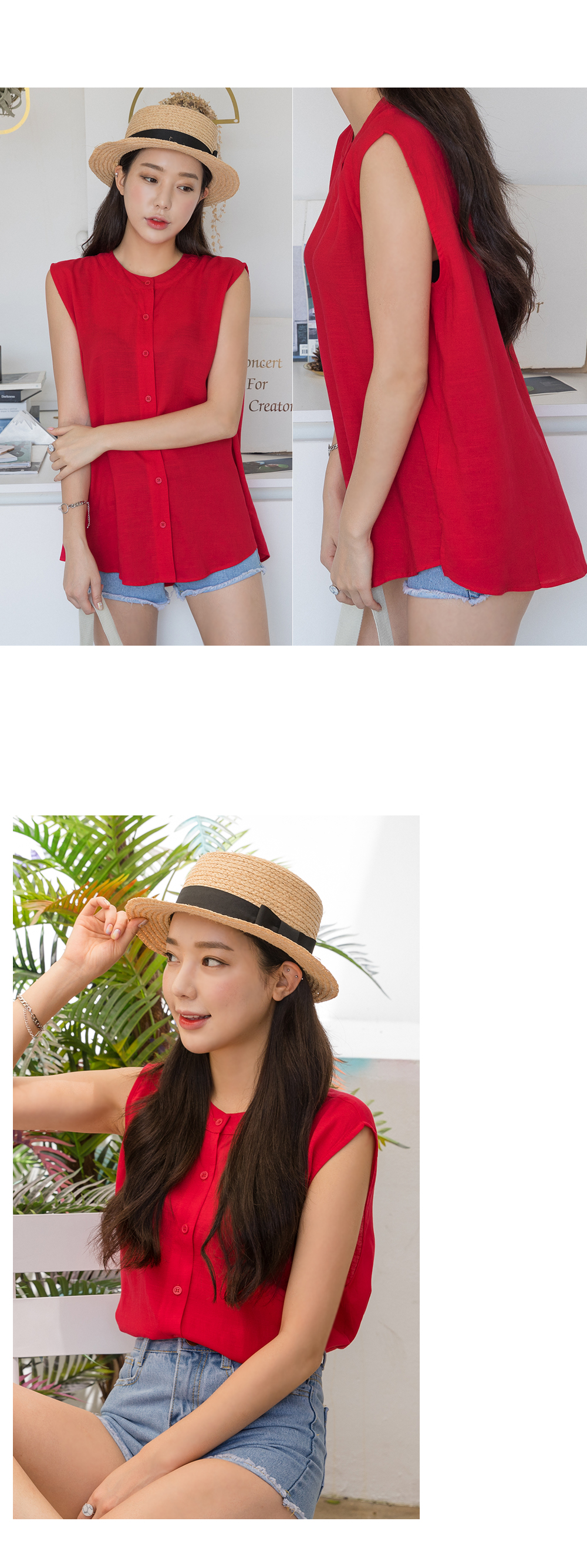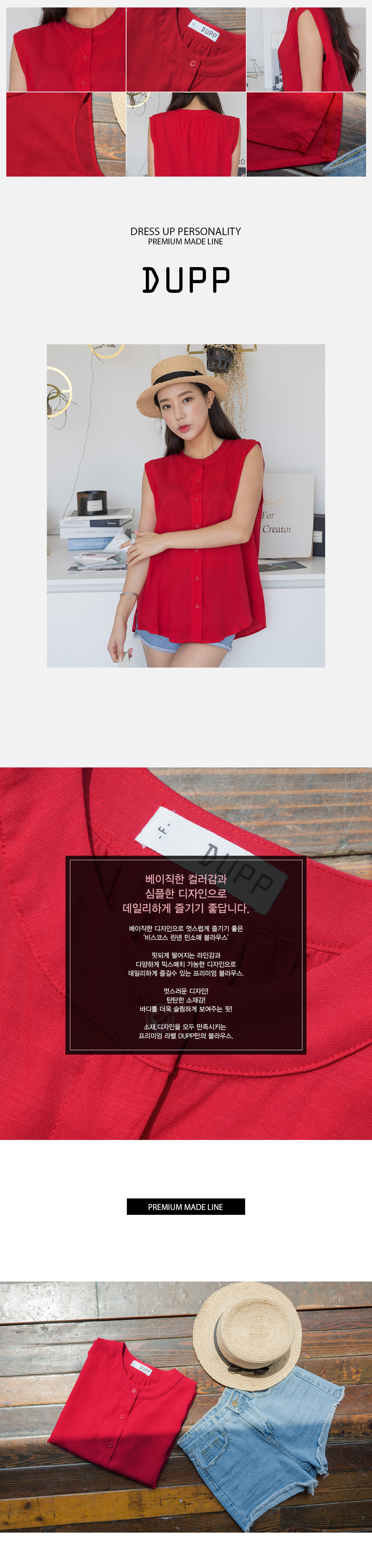"시원한 느낌의 프린트 린넨&요루폴리 민소매 블라우스!"