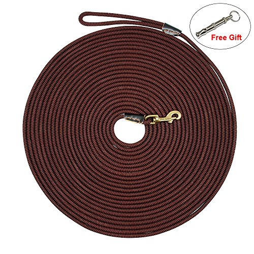 Pet Artist is prefessional dog supplies brand with more than 8 years experience in this field, especially good at dog training products, we aim at your great buying and using experience Various Sizes - 3/8inch diameter, length:10ft(3m),16ft(5m),33ft(10m),66ft(20m), 4 sizes fit for different training purposes and perfect dog control; Light Weight - The leash is very lightweight. Less than 33g/m, the longest size lead weight is just approx 1.5Ibs. It`s easy to carry so you don`t have to carry a heavy tracking leash while training; Heavy Duty - The leash can bear 180Ibs pull, the copper hook/clasp perfect for holding less than 100Ibs dog, such as German shepherd, Labrador, Golden retriever and smaller dogs breeds,etc; Wearproof Anti-rust - The outer layer of the leash is made of special braided nylon which is very wearproof and anti-slip than common rope lead, also the copper clasp/hook is anti-rust, the joints of leash and clasp with genuine leather cover to anti-wear , which make the leash durable and for long time using even in bad training/tracking environment; Easy to Clean and Store - The whole leash is washable better be dried by wind, the clasp/hook is anti-rust, so the leashs is perfect for using on the beach, outdoor adventure, etc;