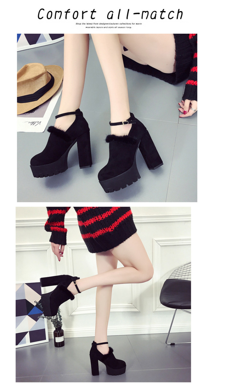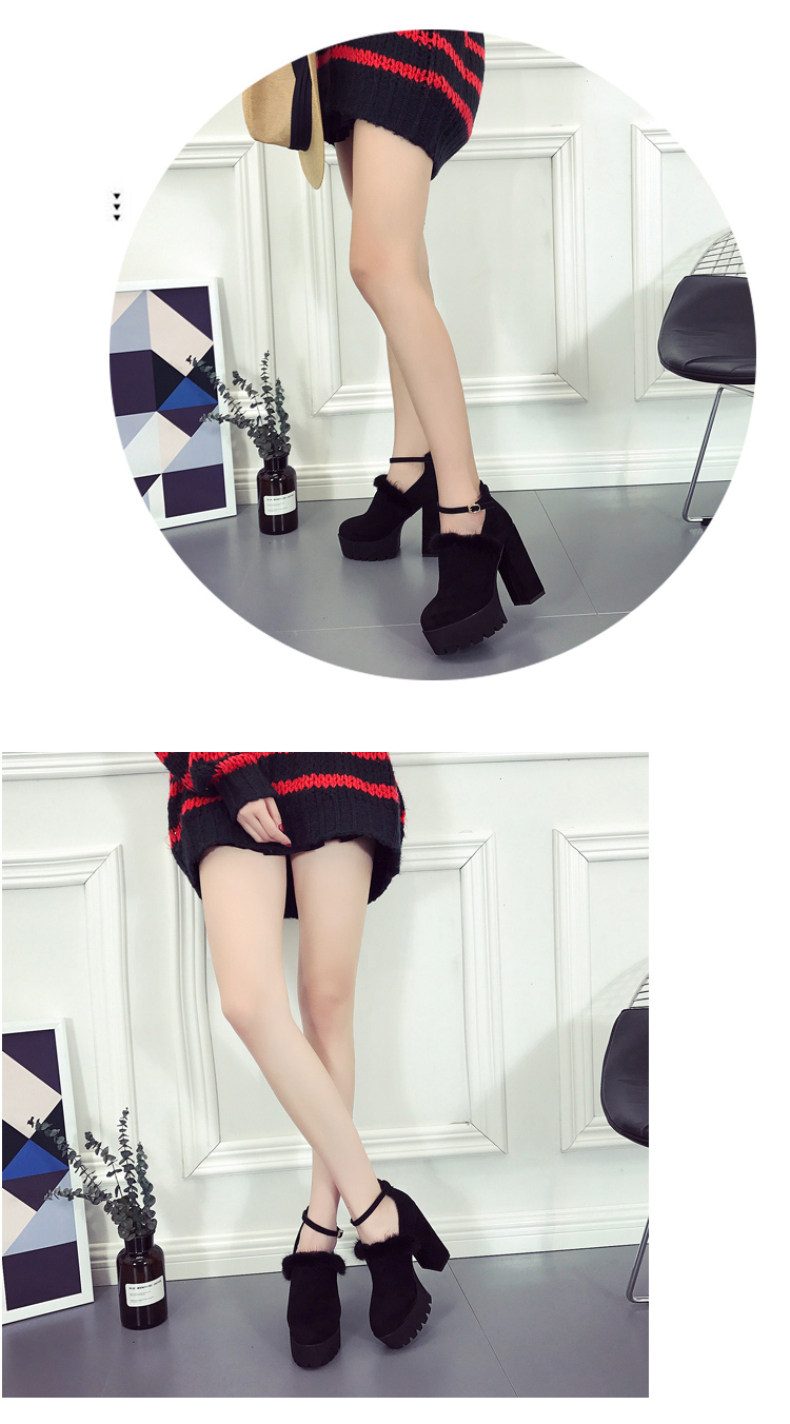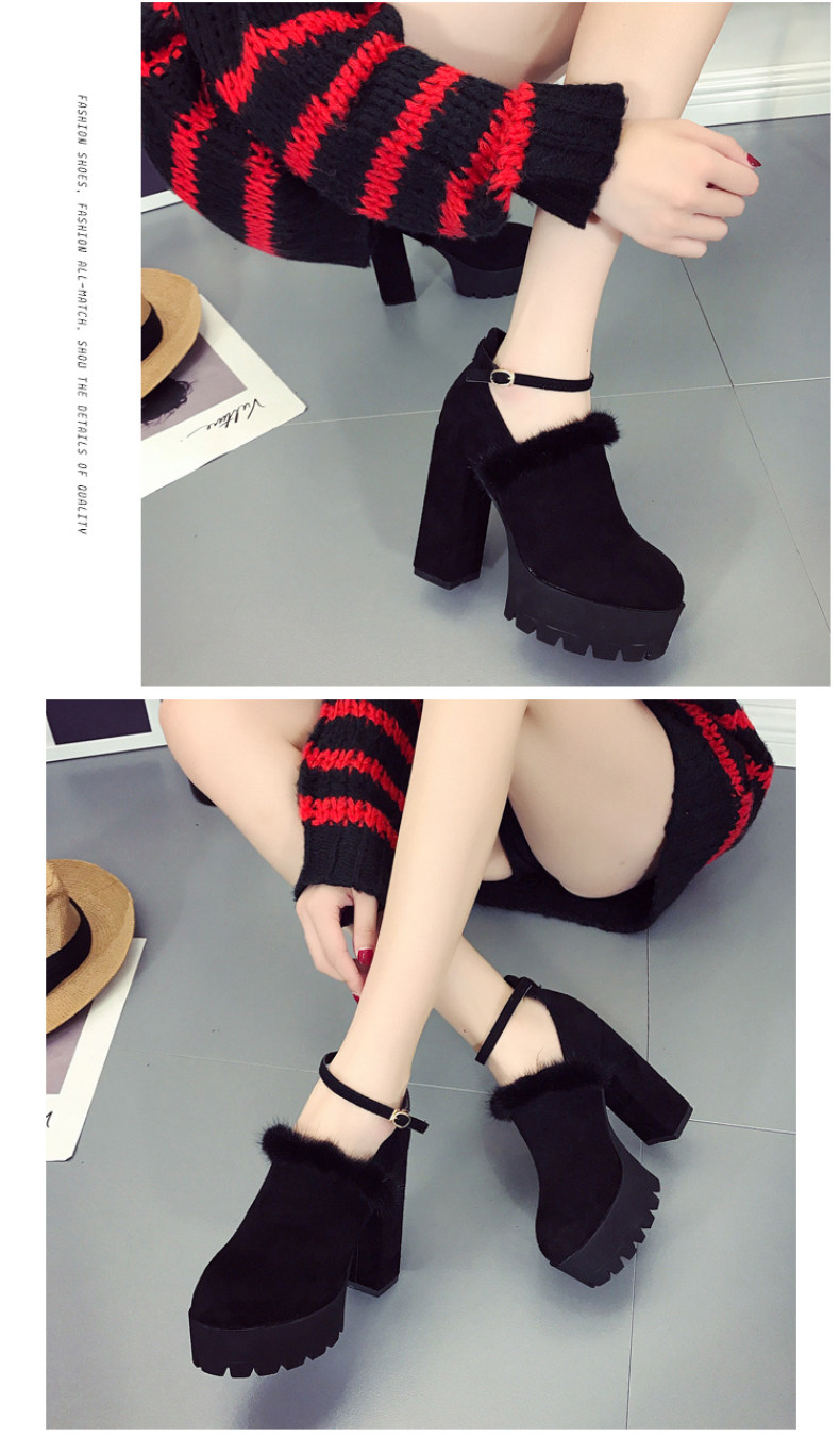 韩版粗跟高跟鞋女秋季新款一字扣带防水台休闲磨砂性感女鞋子