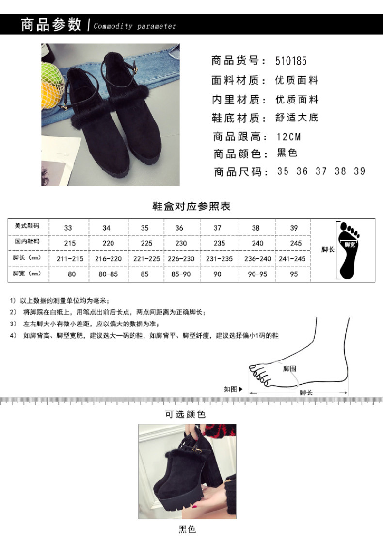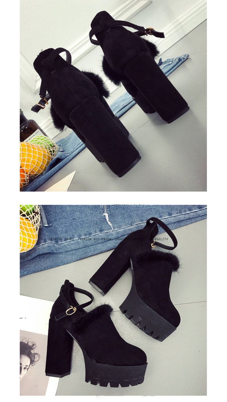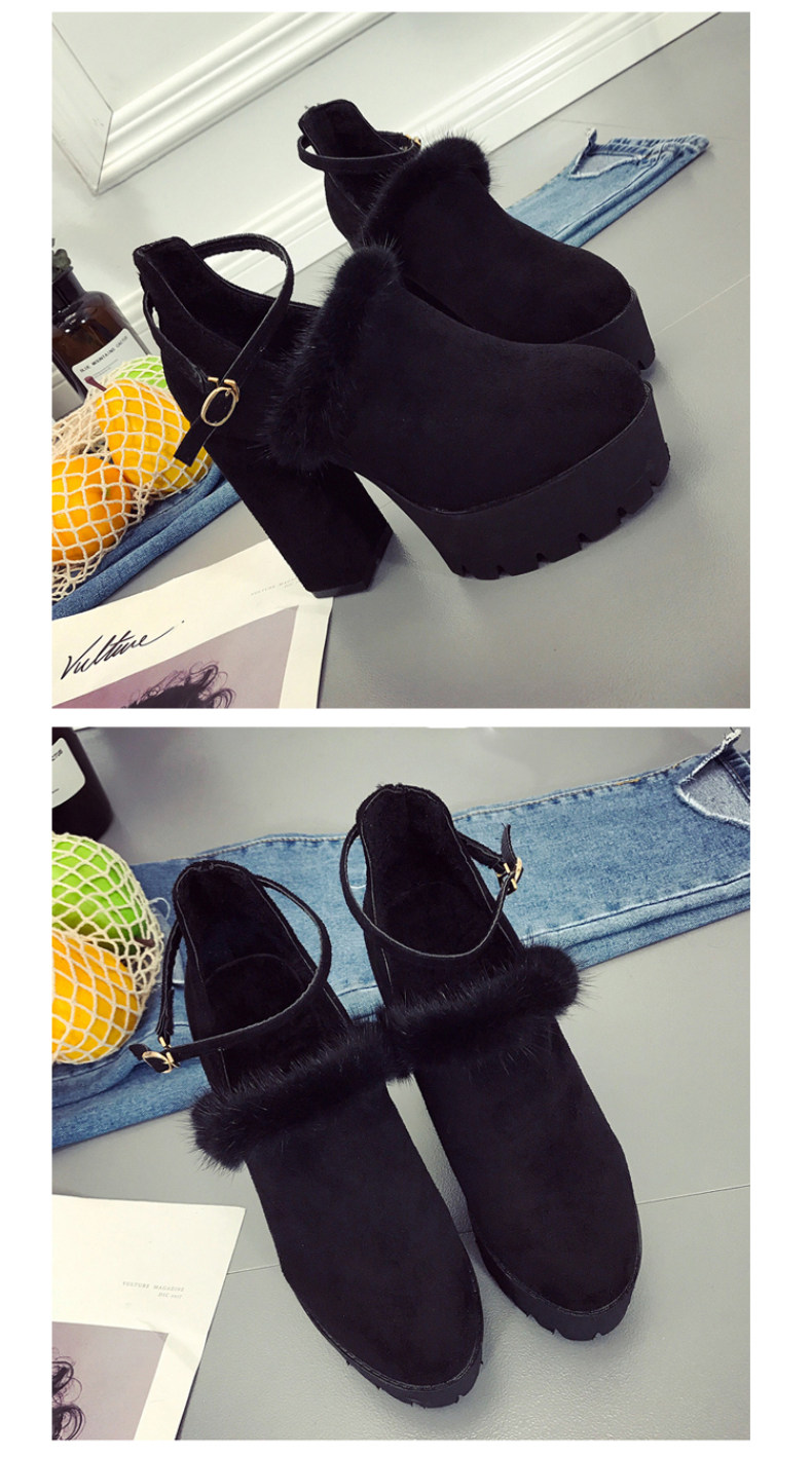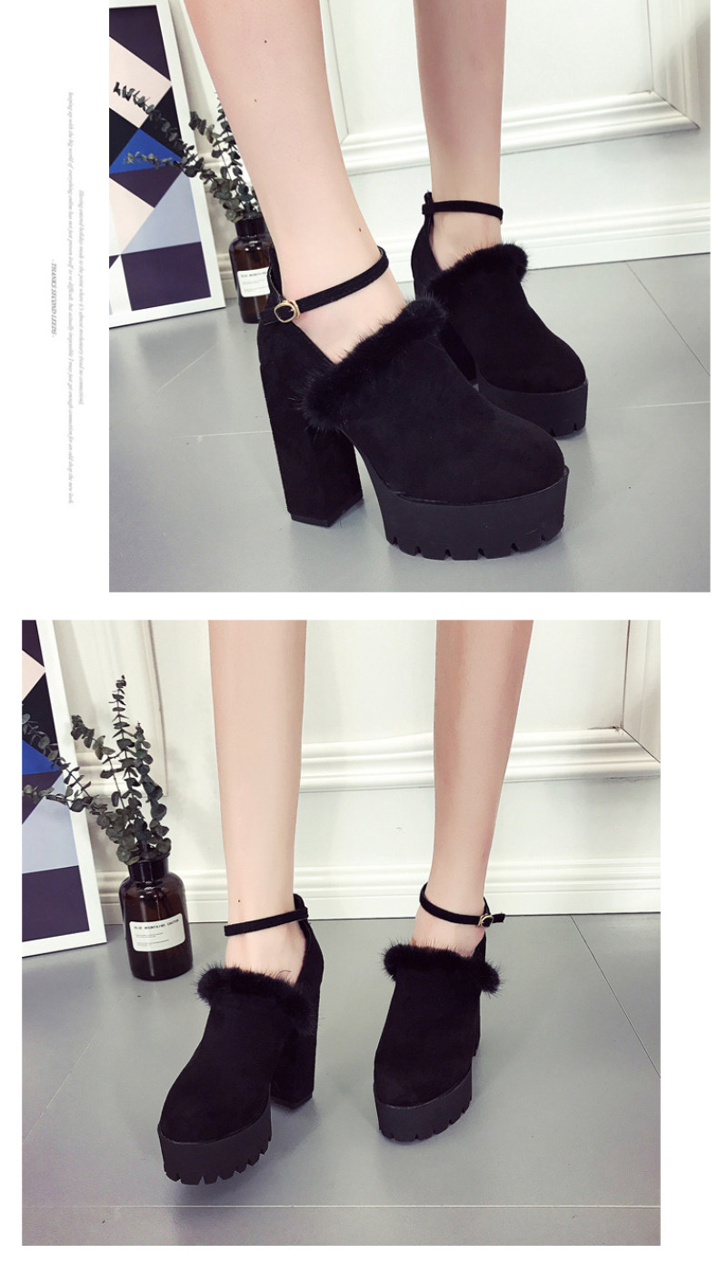 韩版粗跟高跟鞋女秋季新款一字扣带防水台休闲磨砂性感女鞋子