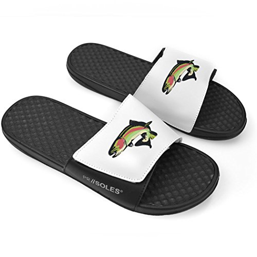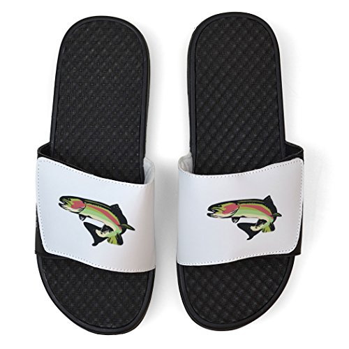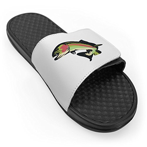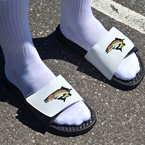 Studio : ChalkTalk SPORTS Publisher : ChalkTalk SPORTS Binding : Apparel Product Description Show your love for rainbow trout with a pair of white fly fishing slide sandals that are lightweight and durable - and a great gift for anyone who fishes. The lightweight slide sandals are breathable and water-resistant for everyday wear and feature a cushioned footbed for a light massage-like effect and a VELCRO® strap that adjusts for the most comfortable fit. Fly fishing enthusiasts will love these sandals! 0
