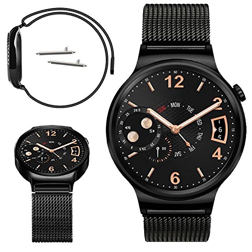 -. Feature : Compatible with Huawei Watch (2015) / 6.7-8.1 inch adjustable length according to your wrist size / Unique magnet clasp design, no buckle needed, lock your watch band easily / Durable stainless steel with fashionable and elegant design / Personalize your Huawei Watch with this refined strap