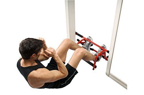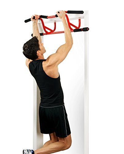 - Feature : Mounts instantly in your doorway without screws / New raised bar design provides height for a full range of motion / Fits most standard doorways (32 to 34 inches),Plastic / Use for chin-ups, pull-ups, sit-ups, dips, abdominals, and more / Padded handles for various grips; includes exercise flipchart