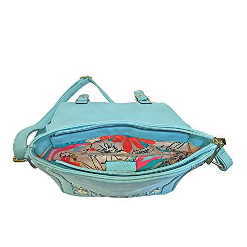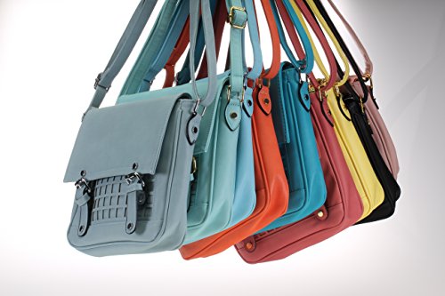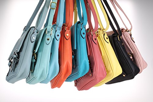 -. Feature : A fashionable, multi-purpose cross body bag that is perfect for many occasions such as school, work, commuting, an every day bag, site seeing, trips to the city, a perfect gift for those special women in your life. / Attachable strap measures: 24"-45", for a comfortable and custom fit or style preference. A fashionable way to hold many of your items. Essential items are secure with 2 types of closures, a zipper to secure all items inside and a magnet closure with in the buckles of the bag. / Outside appearance: Square shaped bag with a fashionable geometric stenciled cut out design. Two buckles and gold toned hardware make this bag very attractive. Interior is roomy with beautiful floral fabric lining. A separated zippered pocket on the back wall of the purse is perfect to place your cell phone or essential items. / Measures 9.5" x 9.5" x 2" / Made of smooth and beautiful faux leather that will look fabulous with many of your outfits. Available in 9 amazing colorful combinations.