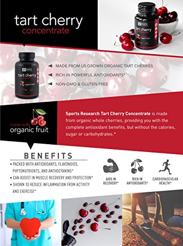 -. Feature : 1. Made from Organic Tart Cherries and Packed with a number of Powerful Antioxidants, including Flavonoids, Phytonutrients, and Anthocyanins* / 2. Provides all the benefits of tart cherries without the Sugar, Carbohydrates,and Calories of the drinking cherry juice. / 3. Non-GMO and Gluten Free. Formulated without sugar, additives, fillers, soy, artificial colorings or stearates.* / 4.Sports Research products are manufactured in a GMP certified facility complying to the strictest cGMP standards to ensure quality, safety, and label accuracy / 5. 90-Day Money-Back Guarantee! If you're not thrilled with our product, let us know within 90 days and receive a prompt and courteous refund. We stand behind our formula!*