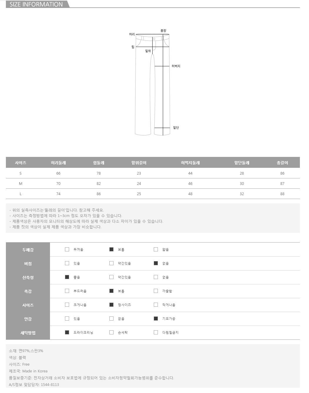 허리선 안쪽엔 밴딩처리가 되어 슬림하면서도 편안한 핏감으로