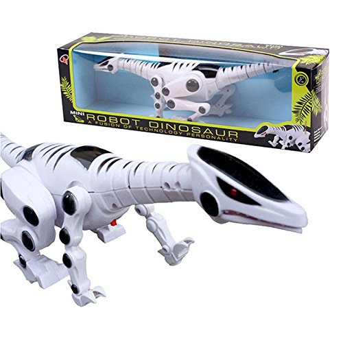 -. Title : Dexop-Babrit Electric Dinosaur Toys Glowing Tyannosaurus with Flashing Eye Lights Sounding Walking Dinosaur Toy for Kids-White and Black