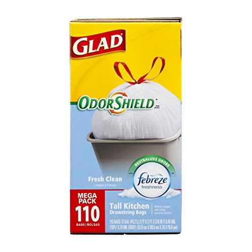 - Title : Glad OdorShield Tall Kitchen Drawstring Fresh Clean Trash Bags, 13 Gallon, 110 Count