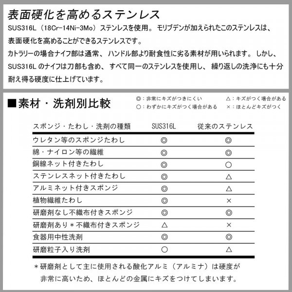 | 素材・材質 | SUS316L (ナイフ:熱間鍛造ステンレス製) |