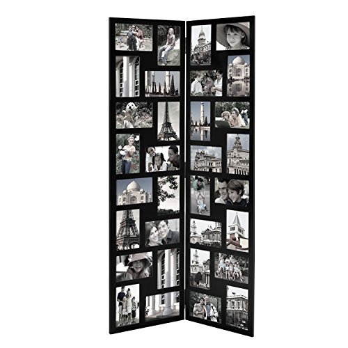 -. Title : Adeco PF0545 Black Wood Hinged Folding Partition Screen-Style Collage Picture Photo Frame 32 Openings, 4x6"