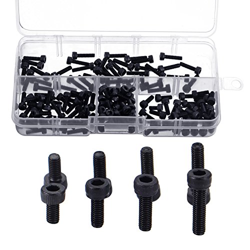 eBoot 160 Pieces M3 x 6 mm M3 x 8 mm M3 x 10 mm M3 x 12 mm 12.9 Grade Bolt Socket Head Hex Cap Screws with Storage Case, Alloy Steel, Black