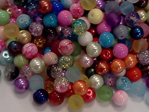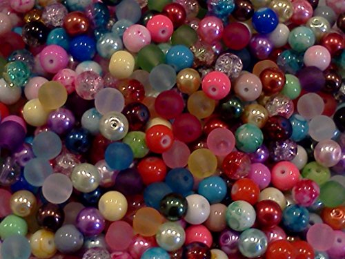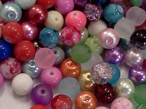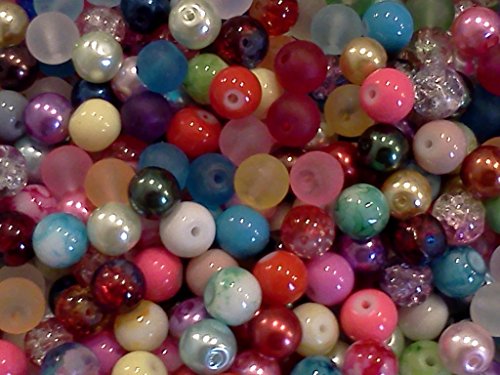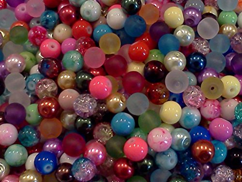 Half-pound Round Glass Beads, Assorted Colors, 8mm, Bulk Lot