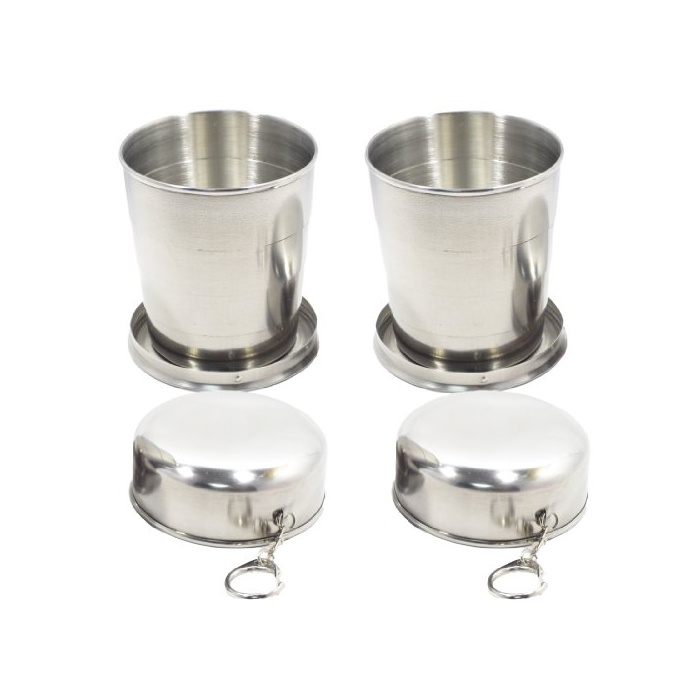 (노 브랜드)무상표 상품 【크게 콤팩트】 접이식 스테인레스 컵 【L사이즈2 개세트】 휴대 컵 270ml 작게 접어 7.5x3cm(MONOZ)