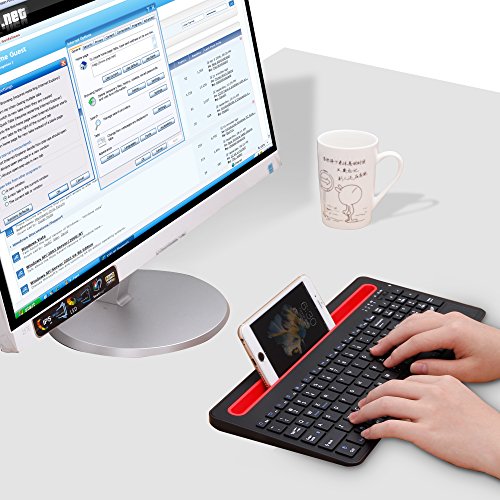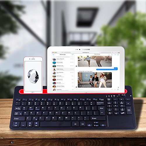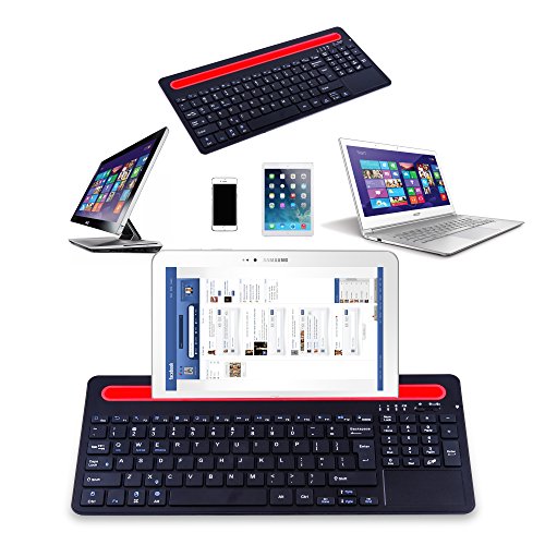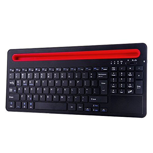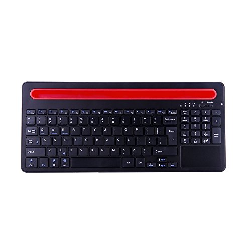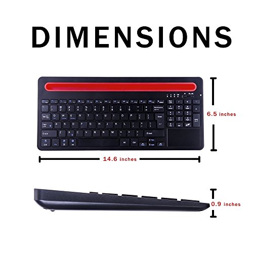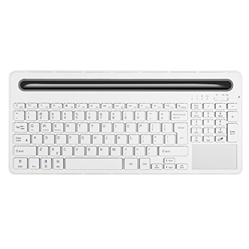 Multi-device touchpad is easy to remote control mouse pointer. The integrated multi-touch trackpad is smooth and responsive with accurate cursor control and multi-touch gestures - back/forward, drag, scroll, zoom, and click with ease. 96 Utral-slim keys have full size keyboard function (Some keys are different from the standard keyboard), keys click quiet