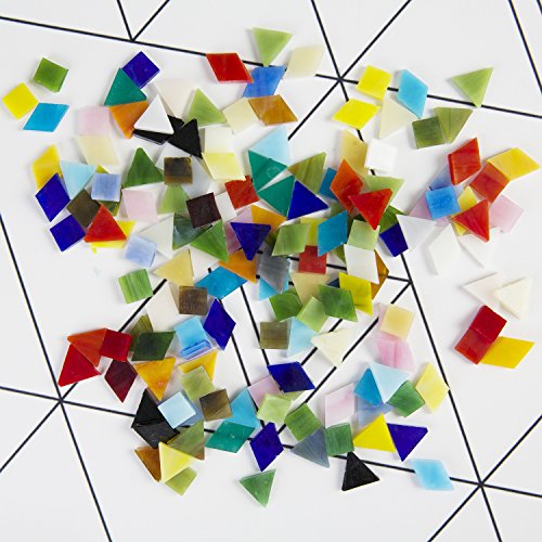 Resinta 300 g/ Pack Assorted shapes Mosaic Tiles Mosaic Glass Tiles Pieces with Storage Box for Home Decoration, Diamond Triangle and Square, Multicolor