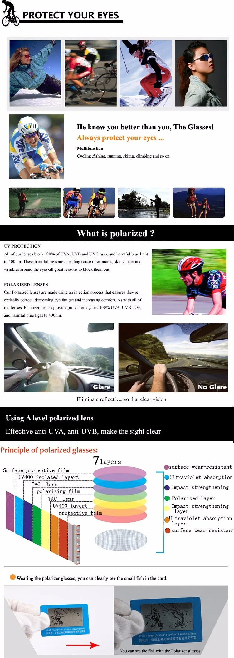 UV400 Protection:block 100% of UVA, UVB and UVC rays, and harmful blue light to 400nm.