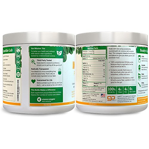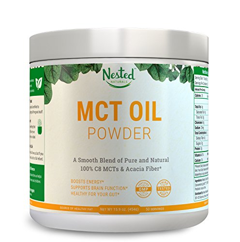 -. Feature : LOVE OUR MCT OIL POWDER, OR YOUR MONEY BACK | Hello, we're Nested Naturals. Nice to meet you! We're a socially conscious company that believes in only using the the best, most ethically produced ingredients available, 3rd party testing every batch and donating to charity to make the world a better place. We stand behind this pledge with our Lifetime Guarantee. If you're not happy with your purchase, simply call or email us. / MADE WITH ONLY THE PUREST C8 MEDIUM CHAIN TRIGLYCERIDES (MCTs): Not all MCT Oil Powder supplements were created equal. MCT fatty acids can have anywhere from 6 to 12 carbons in their chemical structure, but some lengths are better than others with C8 being the very best. Most brands use a blend of C8 and C10, but we ONLY use C8. Why settle for less when you can have the very best? Exactly. / A PORTABLE ENERGY BOOST THAT'S EASY TO DIGEST: We've taken all the natural goodness of MCT Oil and upgraded it to a premium powder form, so you get the same natural energy boost without the stomach upset, messiness, or lack of portability. Our powdered MCT Oil is now easier to digest, easier to blend, and easier to drop in a bag and take on the road with you. And better still it's 100% maltodextrin-free. Perfect! Simply scoop some into your smoothie or coffee, stir well, and enjoy! / ENHANCE COGNITIVE PERFORMANCE & IMPROVE GUT HEALTH: MCT fatty acids (and especially C8 MCT fatty acids) convert into ketones, providing a healthy energy source for your brain and body. To turn the oil into a powder we combined it with Acacia fiber, a 100% natural prebiotic that's been shown to help the good bacteria in your gut. So not only do you get a healthy energy source, but you get a healthy gut too. Bonus! / SOCIALLY CONSCIOUS SUPPLEMENTS: We are big believers in sustainability and strive to make choices that are good for people and the planet. Our MCT Oil is sourced from coconut oil and RSPO-certified palm oil, since there's a world shortage of coconuts. Every product you purchase from us helps improve the nutrition of a woman or child in need through our partnership with Vitamin Angels.
