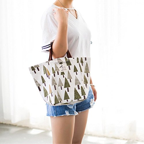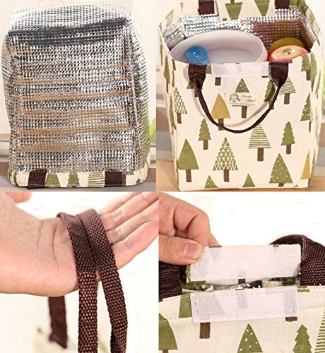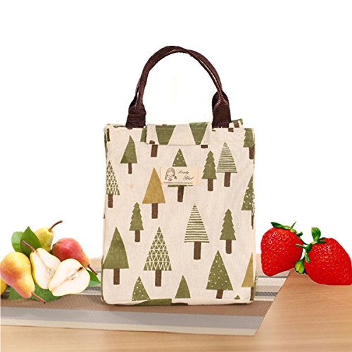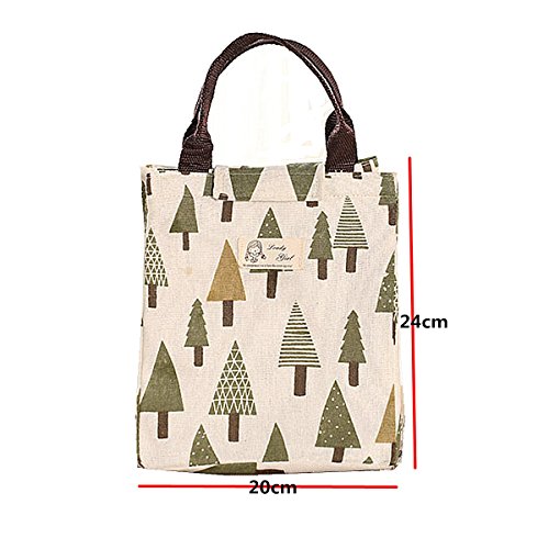 Yahead Lunch Bag Cute Reusable Portable Linen Cotton Insulated Lunch Bag Tote Lunch Soft Bento Cooler Carry Outdoor Picnic Food Bag (Tree)