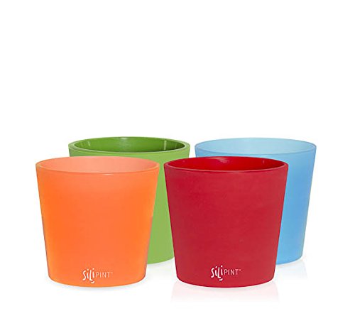 SILIPINT Shorty Silicone Glasses, Squishy Beer Glasses, The Original Unbreakable Silicone Glass, Patented Unbreakable Glassware for Beer and Wine and More, Drinkware That is Heat Safe and Freeze Safe, (Set of 4), Variety of Colors, 9-Ounce