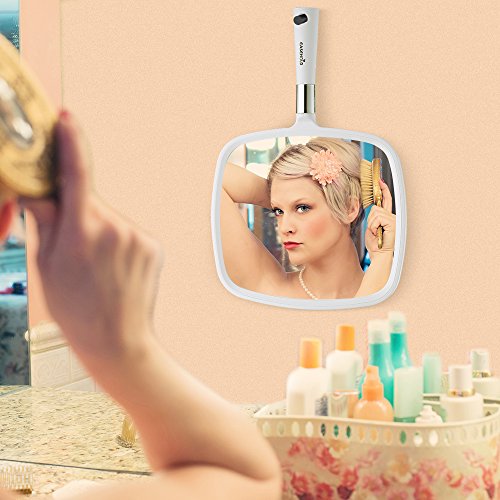 Wall Mounted Mirror with Hook Hole: It can not only be used as a handheld mirror, but also can be hooked/mounted on the wall as a bathroom mirror for makeup, shaving or personal skin care.
