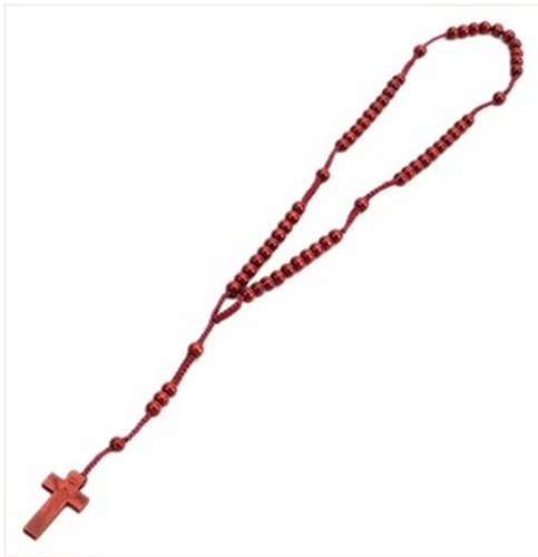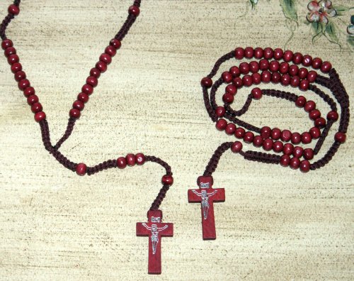 - Hand Made Rosary with Round Polished Solid burgundy Wood Beads