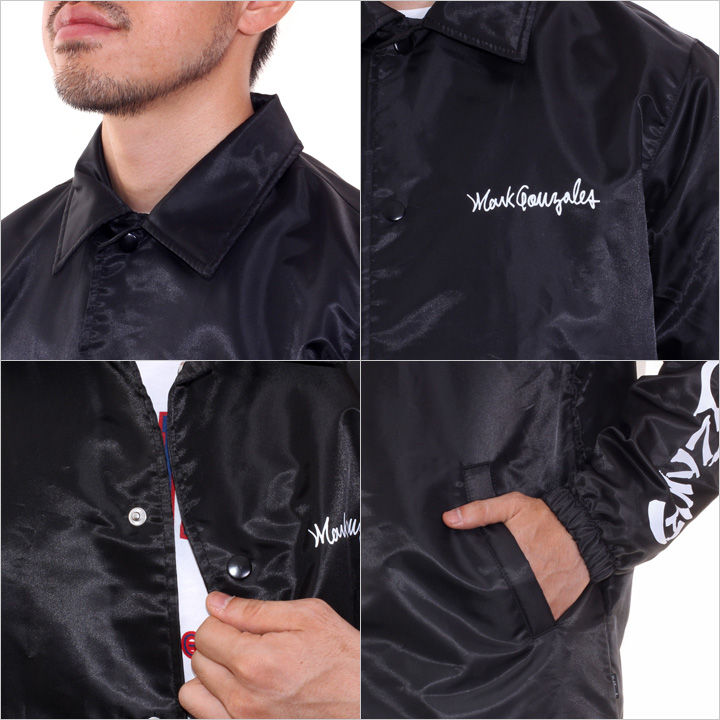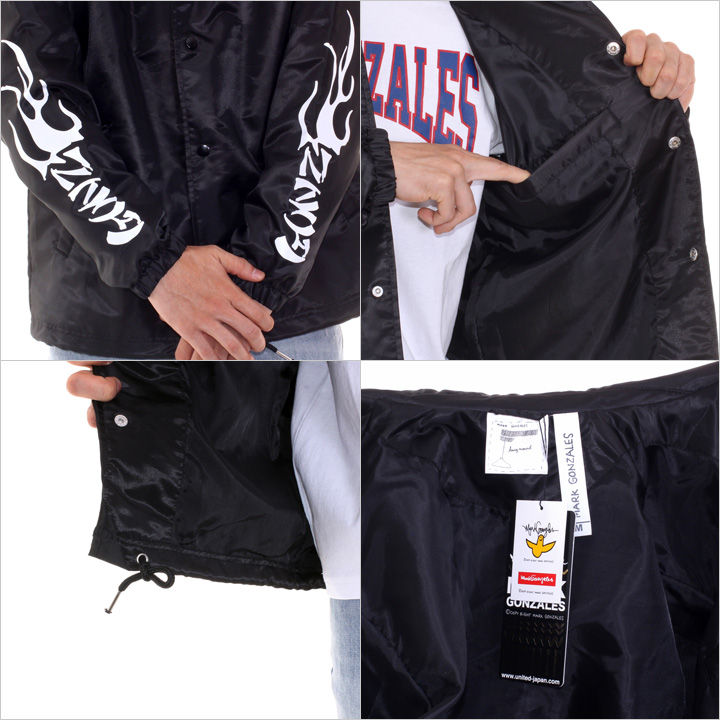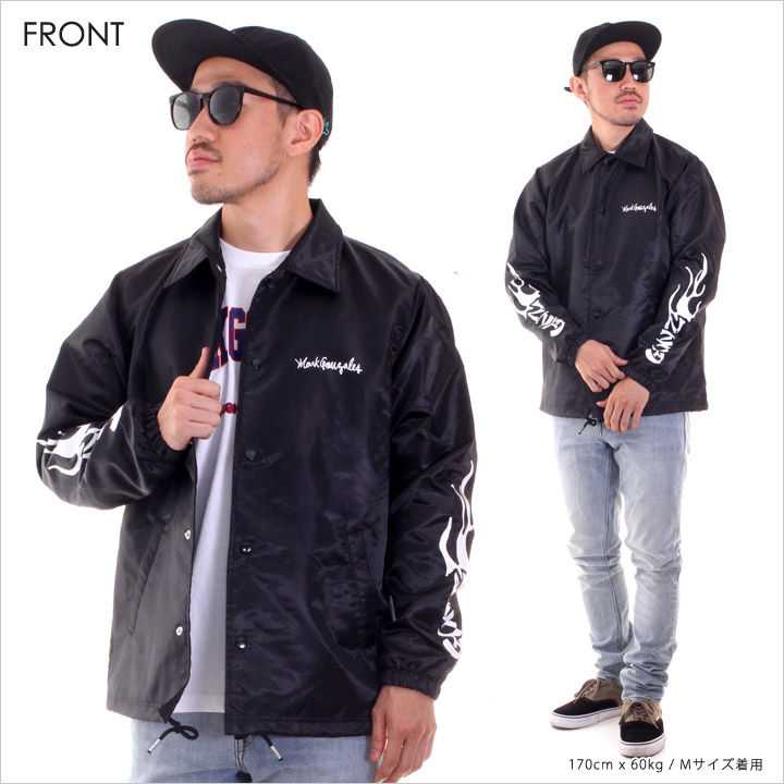 他にはない個性的なプリントデザインが楽しめるジャケット。 シンプルなボディーに栄える両袖のピンファイヤーイラストや左胸にさりげなく施された刺繍ロゴなど、ゴンズファン垂涎のデザインに仕上がっています。 また厚手でしっかりとした素材感で、インナーにパーカーやスウェットなど温かいトップスを合わせれば秋冬の肌寒い時期にも活躍してくれる着用感が味わえる一着。 マークゴンザレスのジャケットは毎入荷時に売り切れが続出する人気アイテムですので、お早めのチェックをオススメします!!