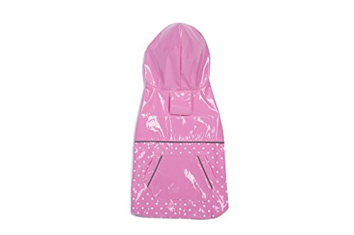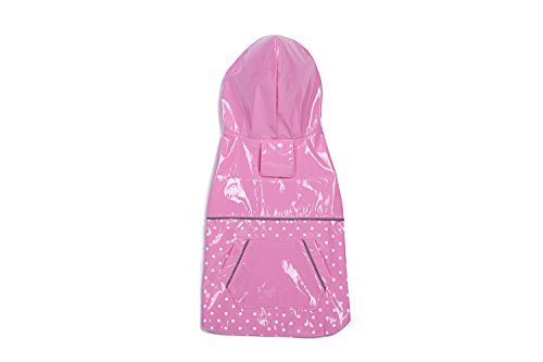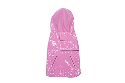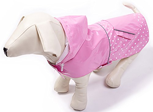 BINGPET BA1888 Fashion Reflective Waterproof Dog Raincoat Cute Dots Pattern Outdoor Hooded Rain Coat for Dogs, Pink XS