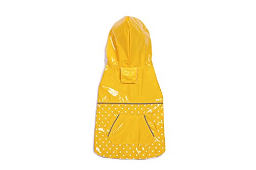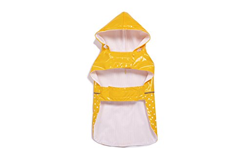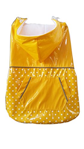 BINGPET BA1888 Fashion Reflective Waterproof Dog Raincoat Cute Dots Pattern Outdoor Hooded Rain Coat for Dogs, Yellow M