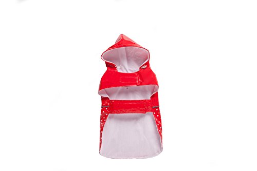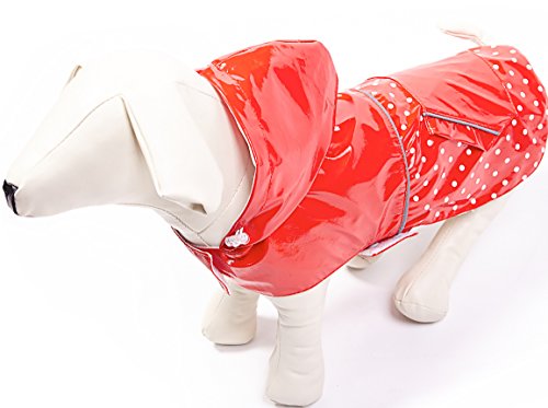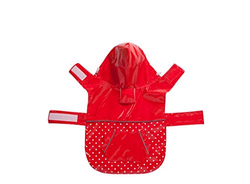BINGPET BA1888 Fashion Reflective Waterproof Dog Raincoat Cute Dots Pattern Outdoor Hooded Rain Coat for Dogs, Red S