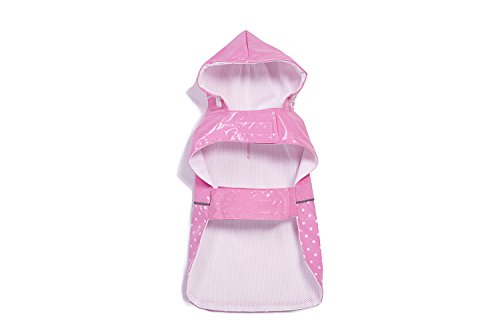 BINGPET BA1888 Fashion Reflective Waterproof Dog Raincoat Cute Dots Pattern Outdoor Hooded Rain Coat for Dogs, Pink M