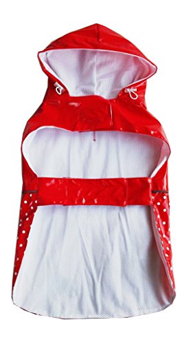 BINGPET BA1888 Fashion Reflective Waterproof Dog Raincoat Cute Dots Pattern Outdoor Hooded Rain Coat for Dogs, Red XXL