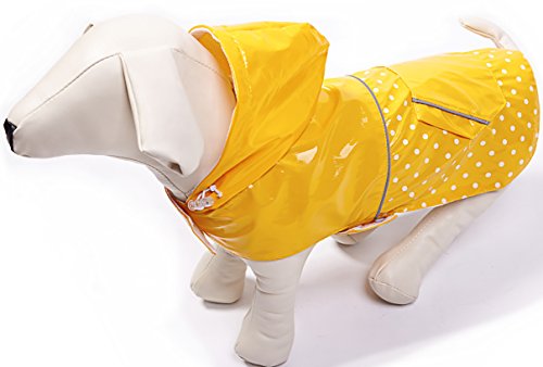 BINGPET BA1888 Fashion Reflective Waterproof Dog Raincoat Cute Dots Pattern Outdoor Hooded Rain Coat for Dogs, Yellow XS
