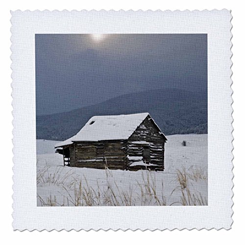 3dRose qs_91593_1 MT, Bozeman, Barn in a field with Snow - US27 BBR0000 - Brent Bergherm - Quilt Square, 10 by 10-Inch
