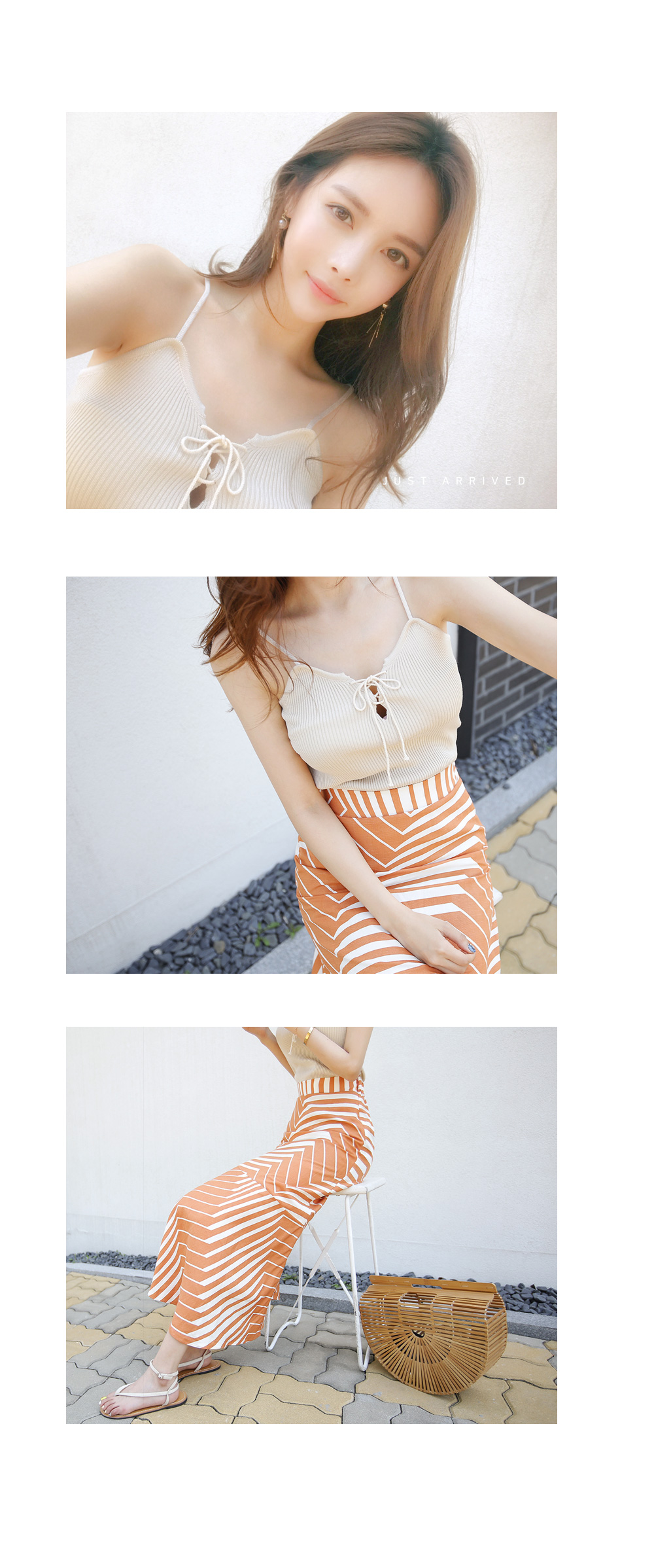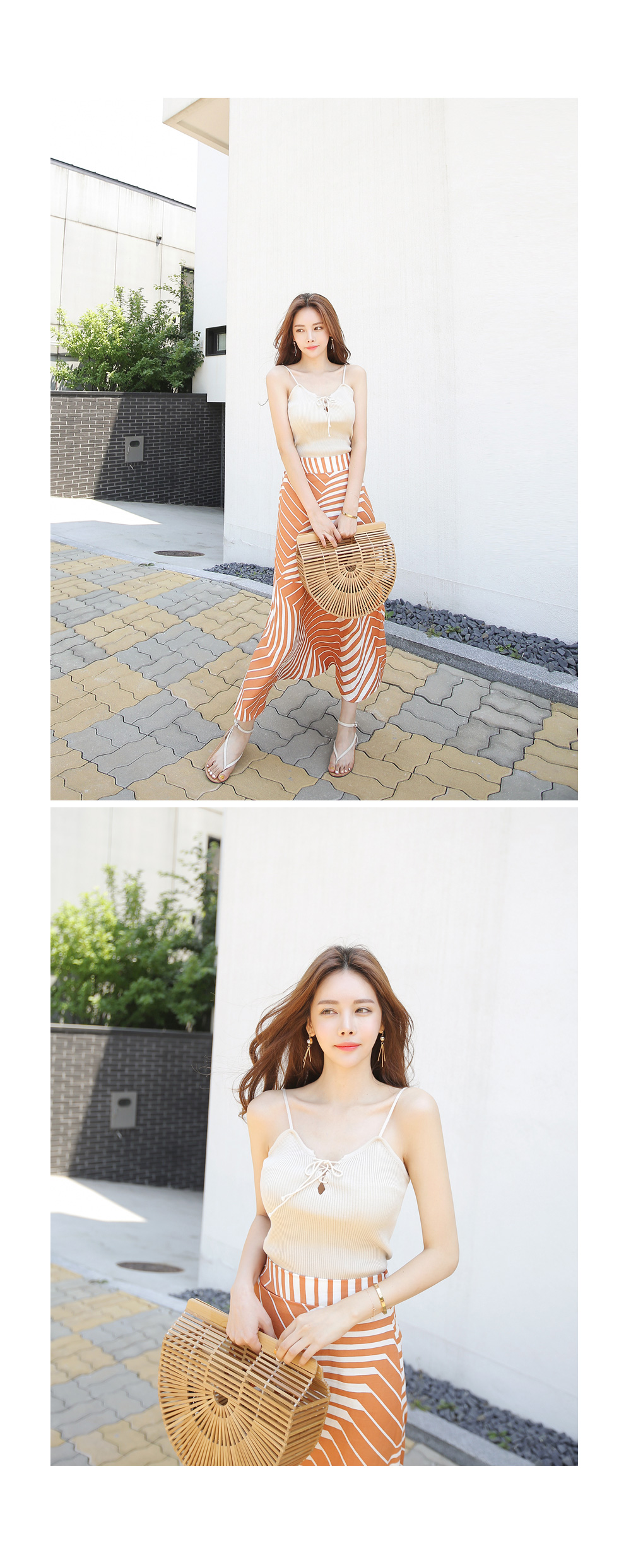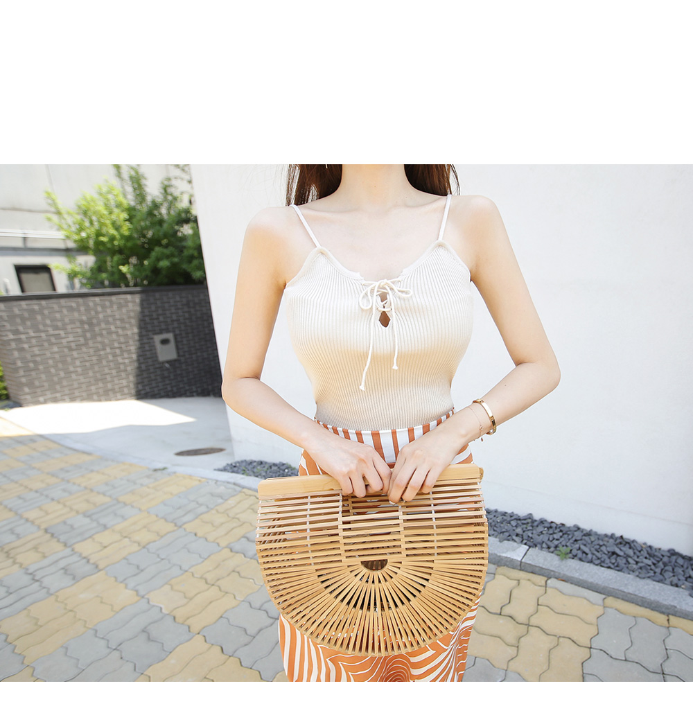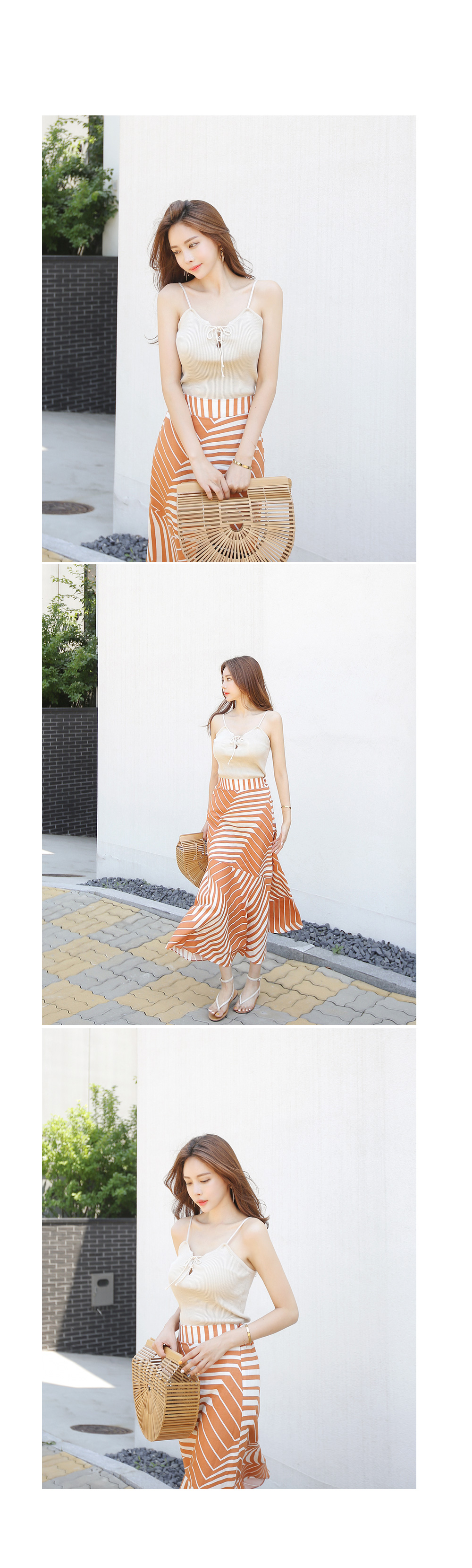끈나시 디자인으로 여름에도 시원하고 가볍게 입기 좋아요.