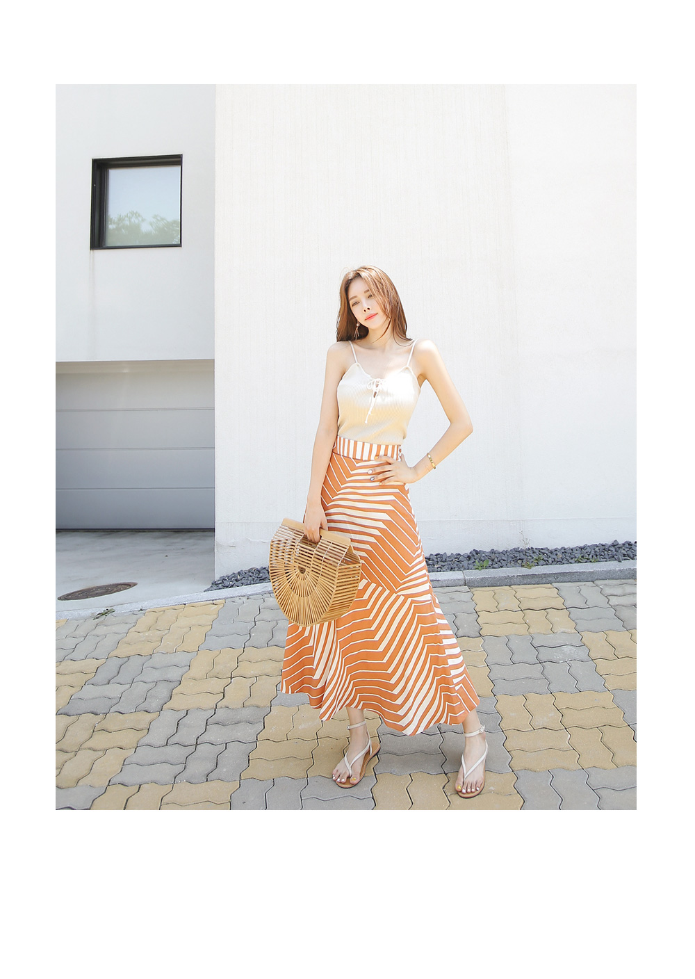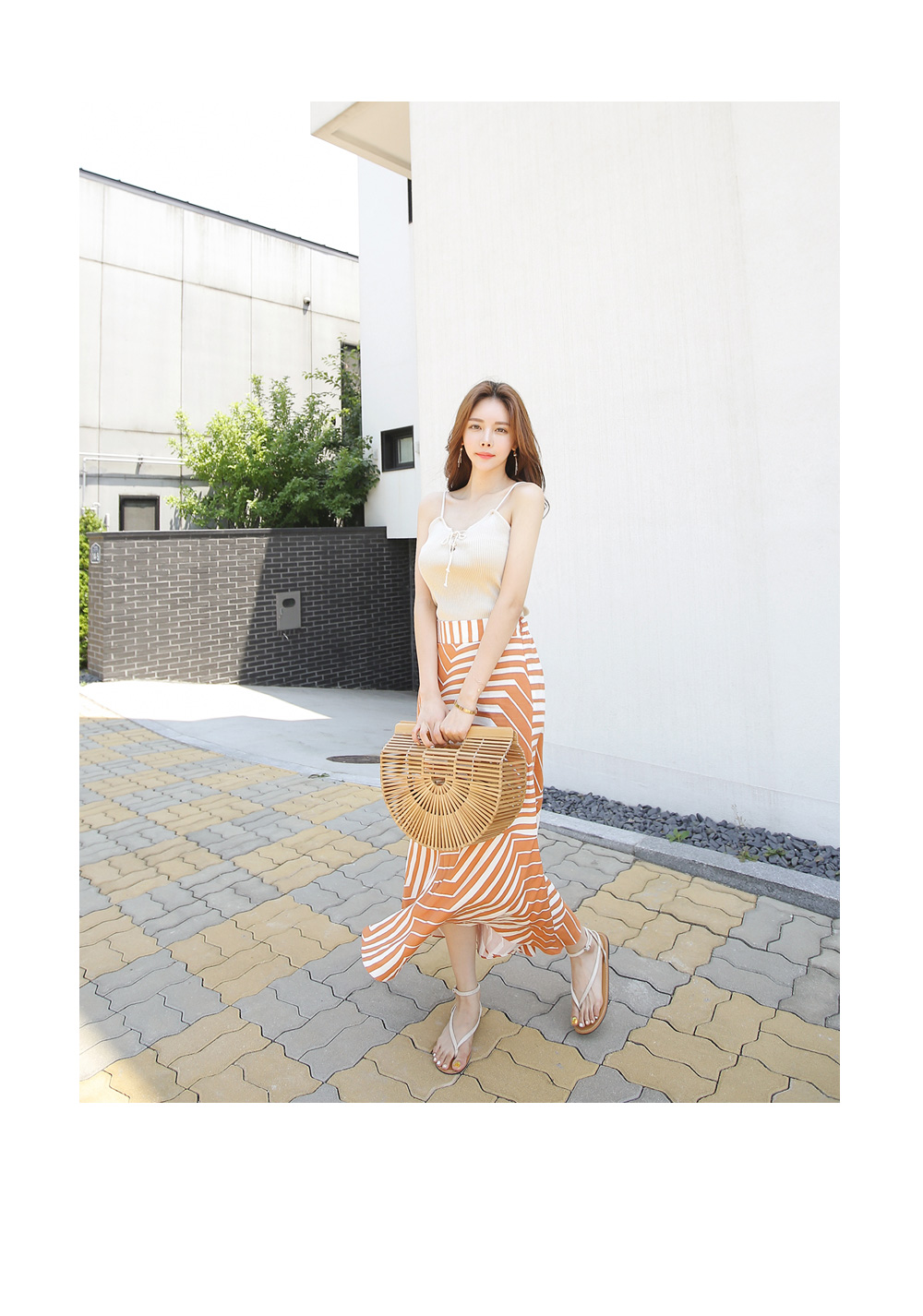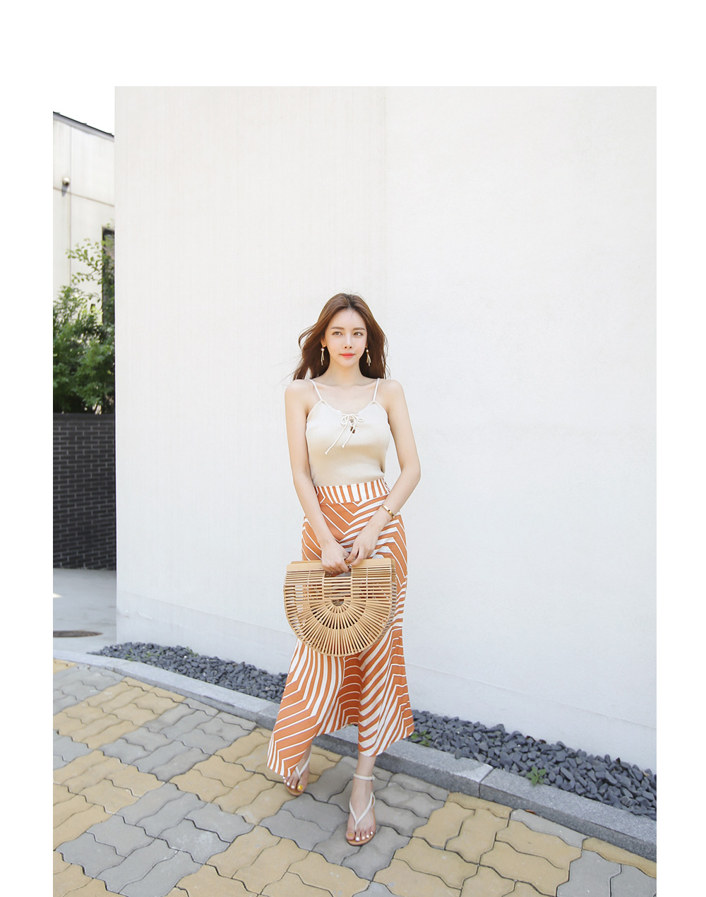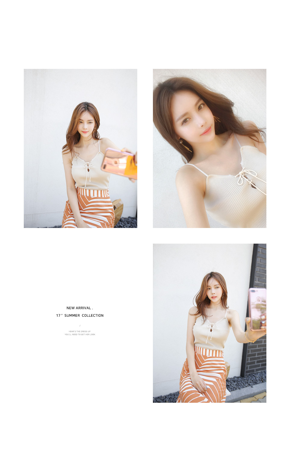 끈나시 디자인으로 여름에도 시원하고 가볍게 입기 좋아요.