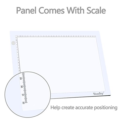 Ultra Thin At only 5MM thick Eye-Protect Technology Precise scale There are two features calibrations in centimeters on the left and top side to help your artwork precisely Environmental Protection, long life We use LED strip as light source. You power on the light box for the whole day, but never worry it is overheat. Its life is over 50,000 hours Health LED light source protect your eye out of hurt. It is very suitable for long time to create artwork, also for child to play colorful plastic toy