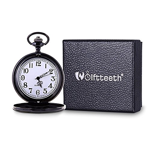 WOLFTEETH 회중 시계 스무스 빈티지 블랙 스틸 쿠로가네 맨즈