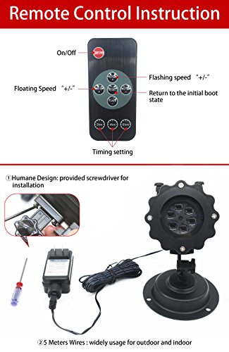 - 【Infrared Ray Remote Control with 5 Working Modes】The remote control can set in 5 working modes to as per your diverse needs :images steady on,fast floating,slow floating, fast flashing,slow flashing.You can point to the image or lens of the projection light to control as our infrared ray remote design.