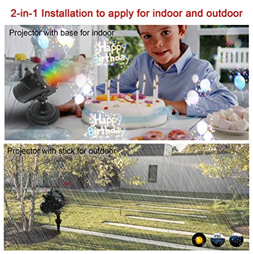 - 【16 Switchable Theme Slides】:Total 16 switchable dynamic patterns, including halloween monster,christmas snowman, santa claus,pumpkin, kids birthday party, rose with hearts, white snowflakes, colorful snowflakes,animal worlds, easter bunny, marine animal, fireworks, christmas elk, party balloon,April Fool's Day, Instantly create an atmosphere for halloween,christmas, new year,valentines day,kids birthday party,holiday or family gathering,fulfill your year-round needs.