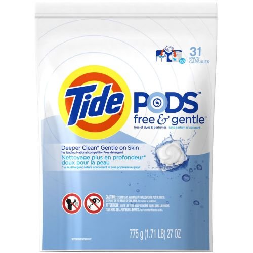 -. Title : Tide Pods Free and Gentle Laundry Detergent Liquid, 31 count per pack -- 4 per case.